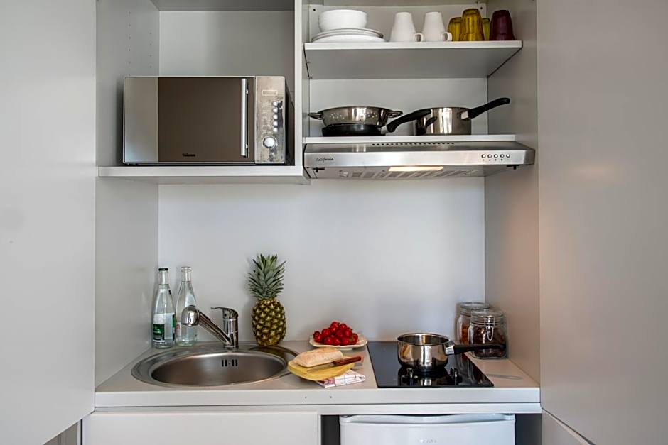 This air-conditioned room features a TV with satellite channels, Canal+, a safety deposit box, a kitchenette and some have a balcony. The private bathroom includes a hairdryer. Upon request, the large double bed can be made into two twin beds.